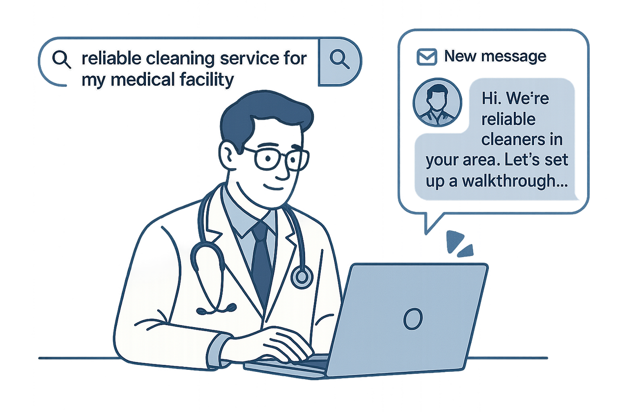 Using our proprietary processes, we constantly watch for real people actively searching terms like “nightly office cleaning,” “medical office disinfection,” or “post-construction cleanup” in your area. When a match appears, we capture the contact in real time.2. We verify the details